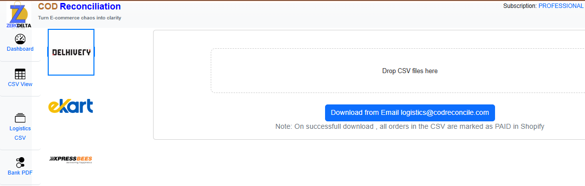 Log in to view all your COD and prepaid orders across multiple carriers. See total orders, pending, paid, refunded, and more.