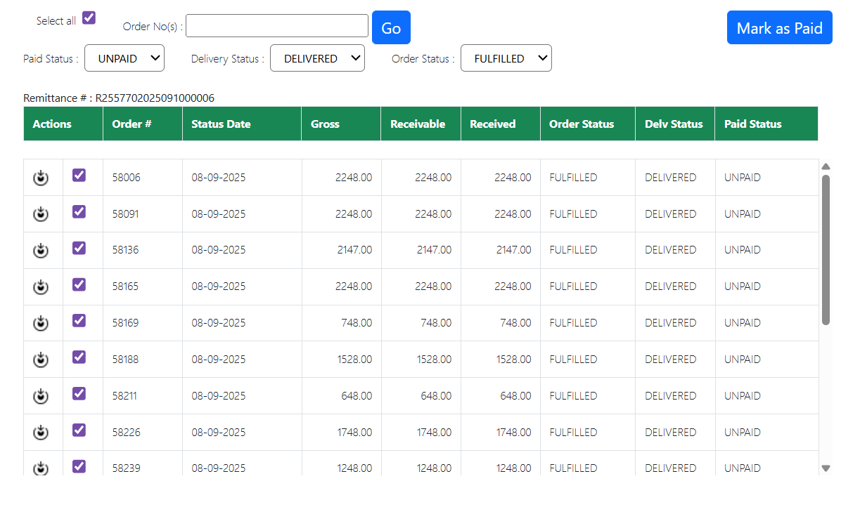 Settlement files are grouped with remittance numbers for easier reference, with advanced search to handle bulk orders in seconds.